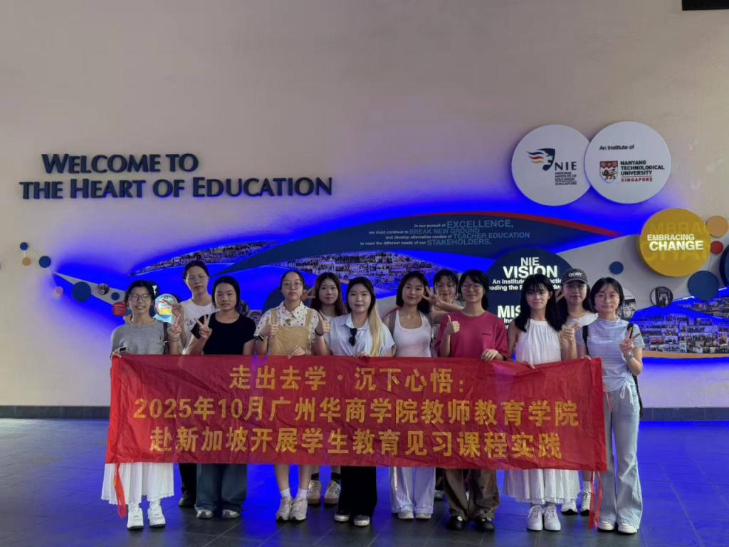 2025 年 9 月 17 日至 20 日,广州华商学院教师教育学院朱娜、秦佳佳两位老师带领 2023 级小学教育专业学生,赴新加坡开展首期“走出去学、沉下心悟” 主题的教育见习活动。四天里,师生们走进专业讲堂、前沿校园与文化地标,在多元实践场景中拓视野、强技能,为未来扎根基础教育筑牢根基,首期见习活动圆满落下帷幕。 见习首日,新加坡资深教育工作者 Hafiz 以 “Live in Singapore” 为主题开展讲座。现场屏幕展示着新加...