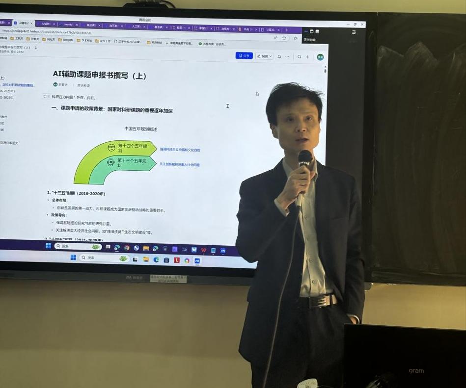 在追求教育创新与教学质量提升的背景下,教师教育学院于2024年11月23日在励志楼D305智慧教室成功举办了AI技术赋能的教师教学能力提升培训活动。此次培训特别安排了“AI辅助课题申报书撰写”与“AI辅助教学课件与课程资源开发”两场专题讲座,旨在帮助教师们掌握信息化教学工具,提升科研申报与教学资源开发的能力。培训聚焦于“AI辅助课题申报书撰写”,由王亚诺博士主讲。王博士从教育科研申报的现状与挑战谈起,深入浅出地剖...