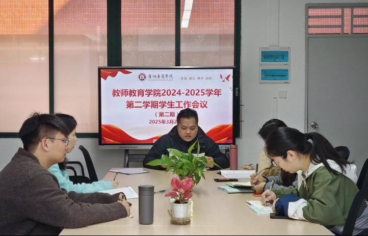 根据工作部署,为进一步推进学生工作,2025年3月21日上午10点,教师教育学院学生工作办公室在广州校区创新楼204会议室召开第二期学生工作会议,肇庆校区辅导员通过线上方式参加此次会议。会议由学生工作办公室副主任江庆基主持,会议重点传达了学校学生工作会议精神和学院关于合格评估工作要求,研讨落实学院文明安全纪律教育月活动实施方案,同时部署了近期学生工作任务,围绕合格评估、全年思想政治教育、学风建设、心理健康...