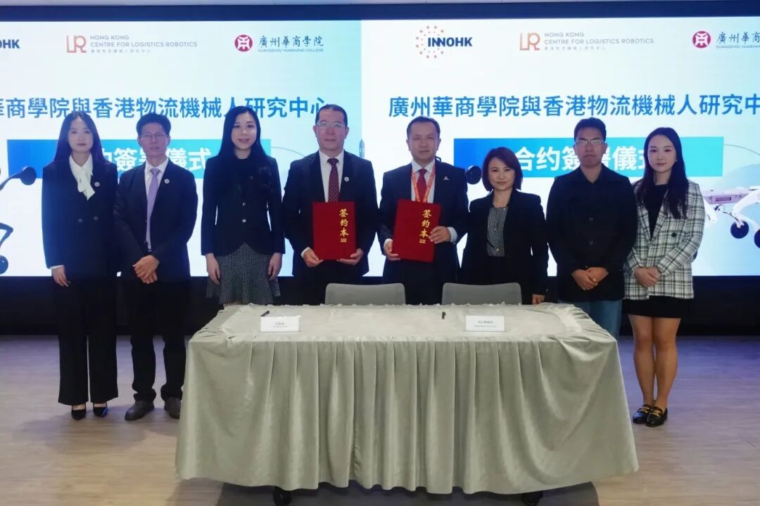 2025年11月26日,广州华商学院(以下简称 “华商”)与香港中文大学 InnoHK 香港物流机械人研究中心(以下简称 “研究中心”)战略合作签约仪式在香港科学园香港物流机械人研究中心有限公司顺利举行。香港中文大学机械与自动化工程系教授、香港物流机械人中心主任刘云辉及其技术团队,华商科教集团副董事长兼总裁、广州华商学院副校长廖伊曼,广州华商学院副校长吕峻闽一行出席仪式,双方代表共同签署合约,以 “深化产教融...
