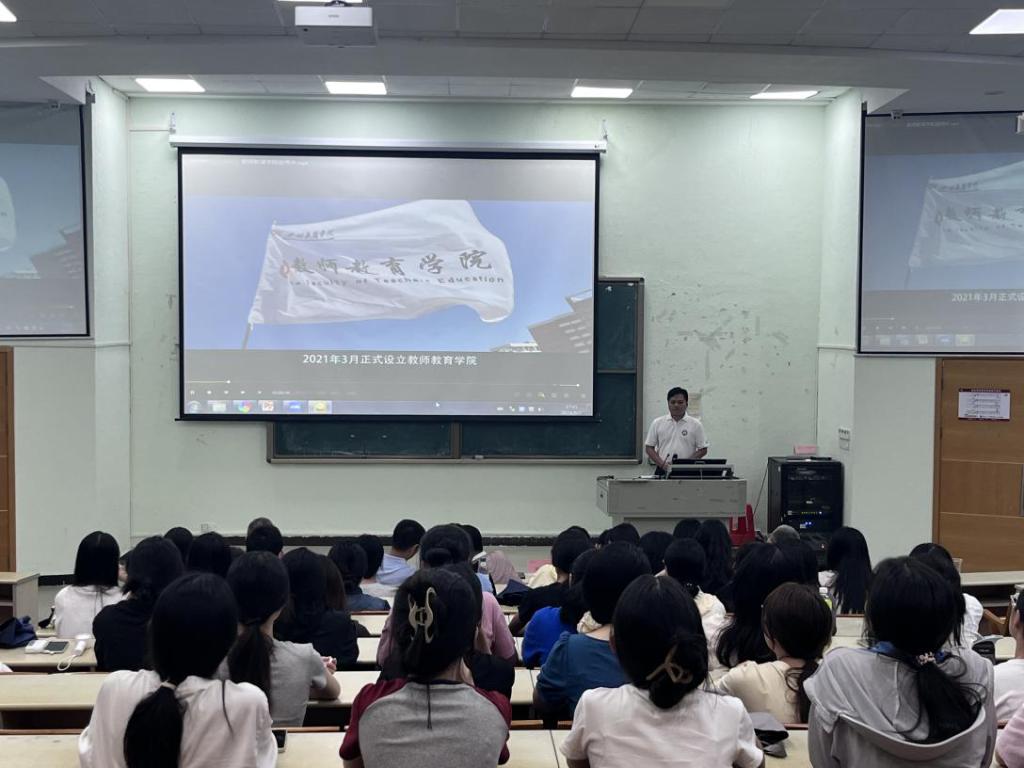 会议伊始,江庆基老师对新生表示热烈的欢迎和祝福,欢迎大家加入到教师教育学院,成为教院人!并通过观看一段精心制作的宣传片,一同走进教师教育学院,感受她深厚的文化底蕴、卓越的教学成果以及师生们积极向上的精神风貌,让大家对教师教育学院有了更好认识和了解。