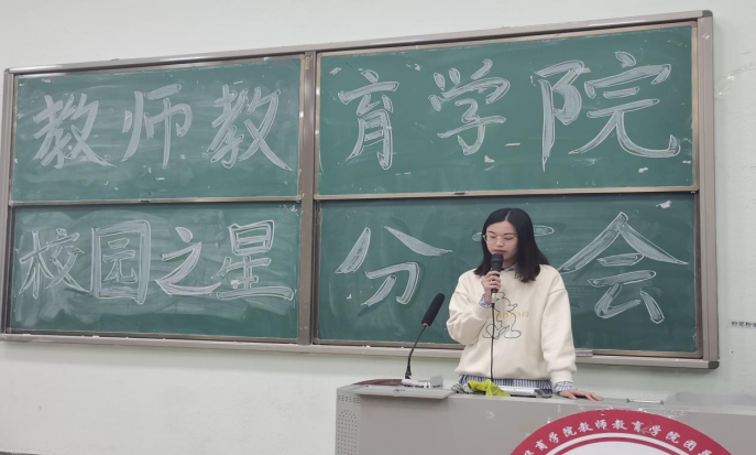 第二位进行分享的是”文艺之星“19级学前教育3班的胡新瑜师姐,总体从追寻者、奔赴者、心得体会三方面向我们分享了自己对文艺的热爱。选择自己所热爱的,热爱自己所选择的。保持态度,坚持热爱,成就自我。
