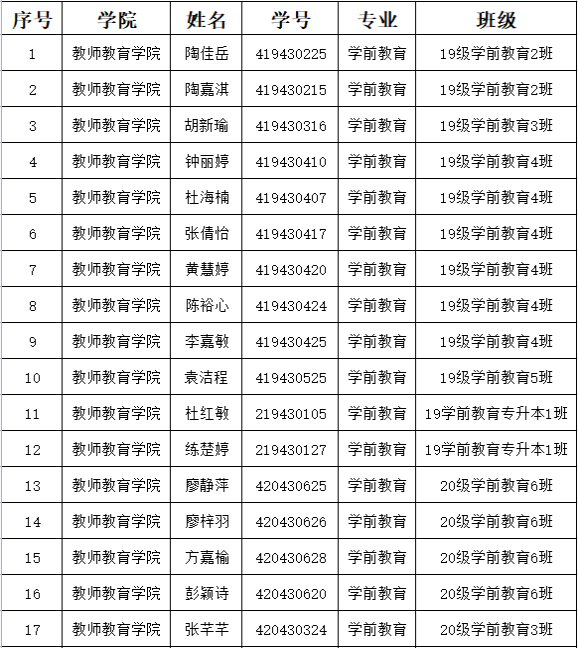 教师教育学院关于2022年“文明安全纪律教育月”院级先进个人和疫情防控工作者、文明宿舍名单公示