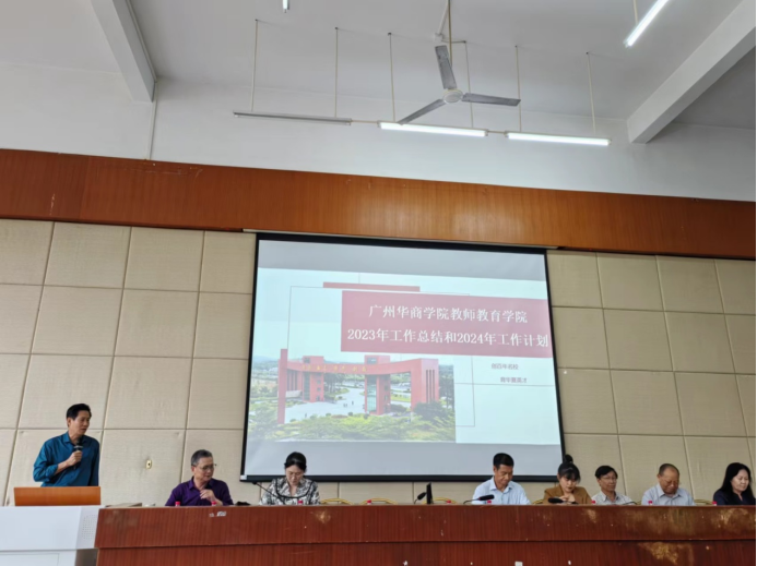 教师教育学院王金道院长首先从师生安全、招生与就业、实践基地建设、师范生技能训练、教学质量、学术科研、日常教学管理等七方面全面总结了学院2023年的工作,学院达到了学风班风好、教师团结合作、学院氛围积极向上的目标。其次,王院提出了四个工作要求:一要迎评估,组织和加强对评估的学习,建章立制;二要对青年教师进行培训;三要杜绝教学事故;四要求每位教师在显示度上下功夫。