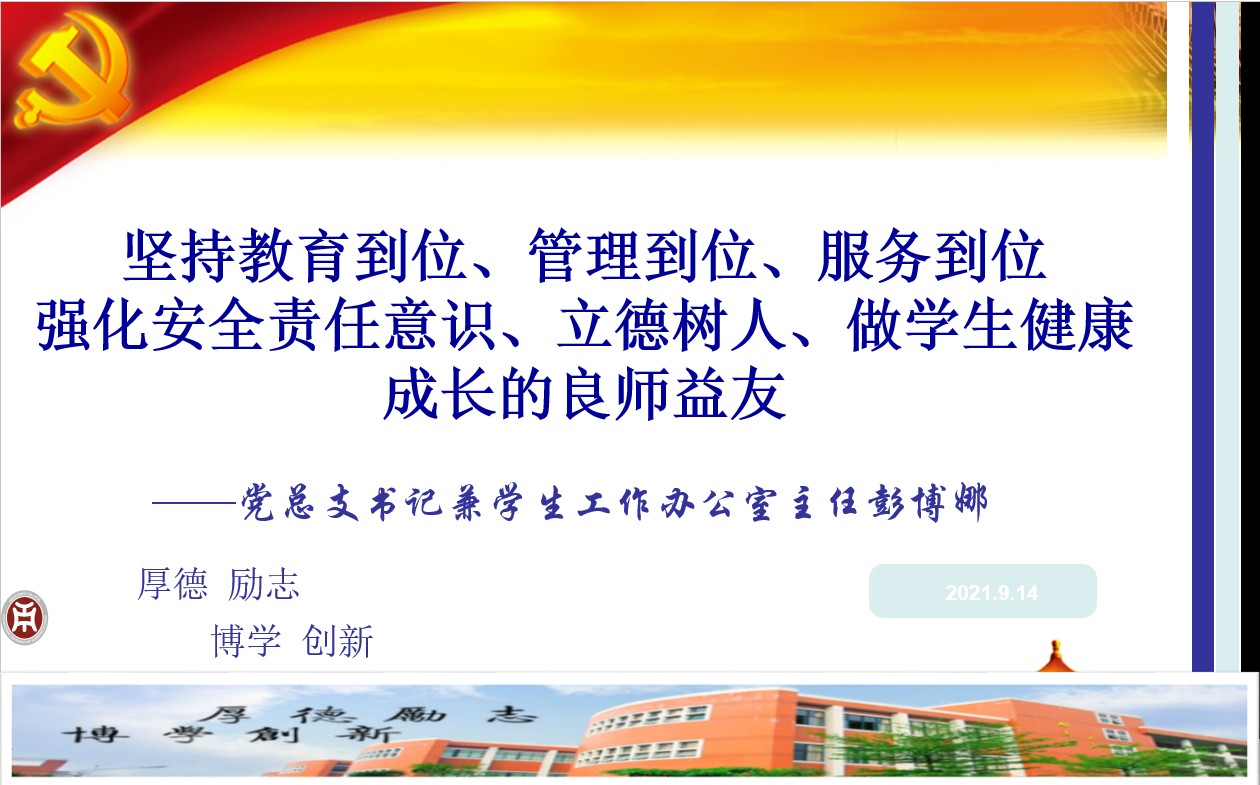 为进一步加强学院德育工作、全面落实学生工作要求,推进班主任工作有序开展,教师教育学院于928日下午两点十分召开了由学工办主任彭博娜老师主持的本学院学生工作会议。会议围绕坚持教育到位、管理到位、服务到位,强化安全责任意识、立德树人、做学生健康成长的良师益友的主题展开。