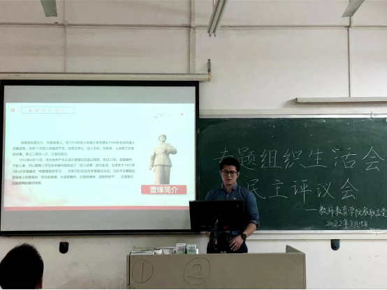 为全面贯彻党的教育方针,深入落实《关于深化新时代学校思想政治理论课改革创新的若干意见》精神,加强学校思政课建设,充分发挥思政课在立德树人中的关键作用,3月15日下午,教师教育学院教职工党支部郑皓元书记以“学习雷锋精神,争当文明先锋”为题,为党员同志们讲授了2022年春季学期开学“思政第一课”。本次“思政第一课”采用线上线下相结合的模式,组织支部党员集中学习。