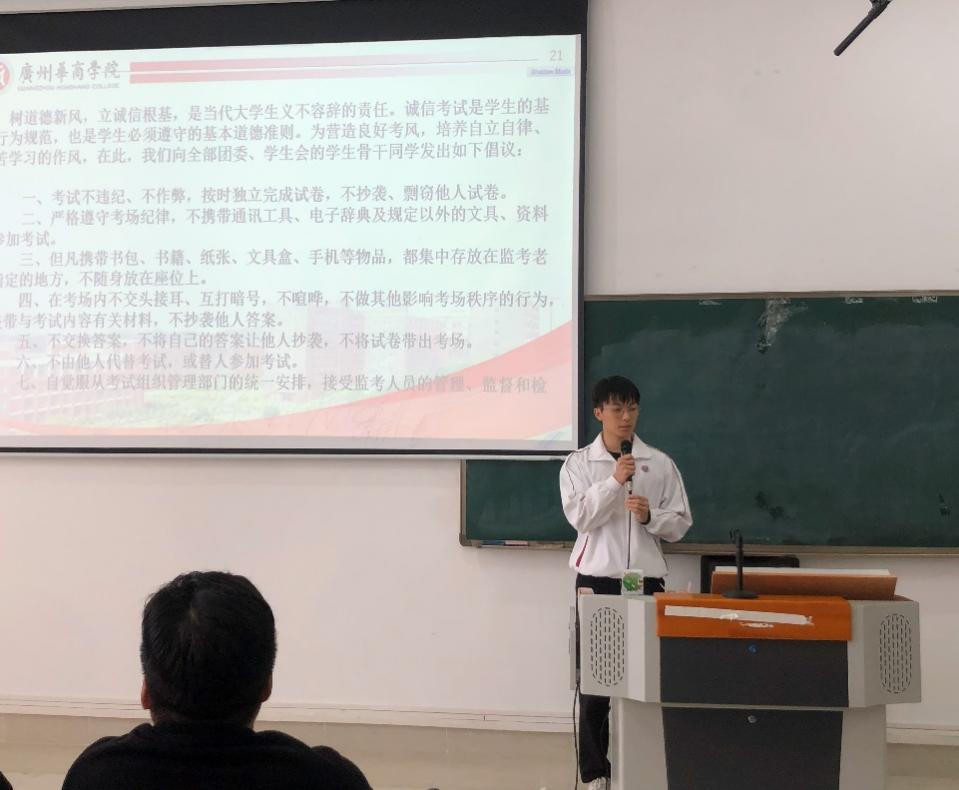 为落实做好学校关于学生期末考试的一系列要求,进一步提高学生考试的纪律性、自觉性,倡导学生树立诚信考试意识,严肃考风考纪。2023年11月30日,广州华商学院教师教育学院在肇庆校区6号楼201召开期末考风考纪动员会。本次会议由教师教育学院学生会指导老师徐炯锋老师主持,参加会议的有教师教育学院全体辅导员,各班班长及团委、学生会全体工作人员。