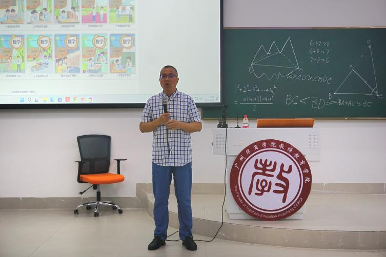 在5月16日下午的第一次讲座中,廖教授通过小学数学教材案例,展示了分析和研究教材的方式,并指出了教材编写中存在的逻辑关系混乱、定义不规范等问题。他鼓励我们用批判性思维看待教材,调动自身发现问题的潜能,解决教学中的不足之处。
