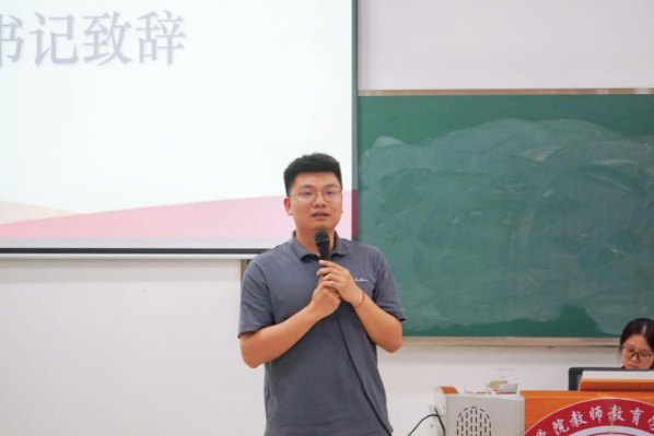 广州华商学院教师教育学院团委书记邓奎老师回顾了团委学生会的发展历程,指出团委学生会人数不断增加,队伍日益壮大,成为了学院各项活动中的中坚力量。他特别提到了舞蹈大赛和志愿活动展现出团委学生会成员们良好的专业素养和团队协作精神。邓奎老师表示,随着学院的不断发展和壮大,团委学生会也将迎来更加广阔的发展空间和更多的机遇,团委学生会的成员们要继续保持团结、拼搏、创新的精神,积极投身学院各项工作中,为学院的发展贡献自己的力量。