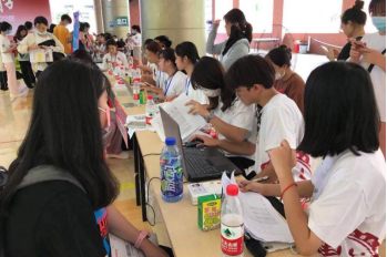 炎炎烈日下,也难掩志愿者们的热情,志愿者们热情积极地引导新生,在志愿者们的努力下,新生们顺利完成报道。