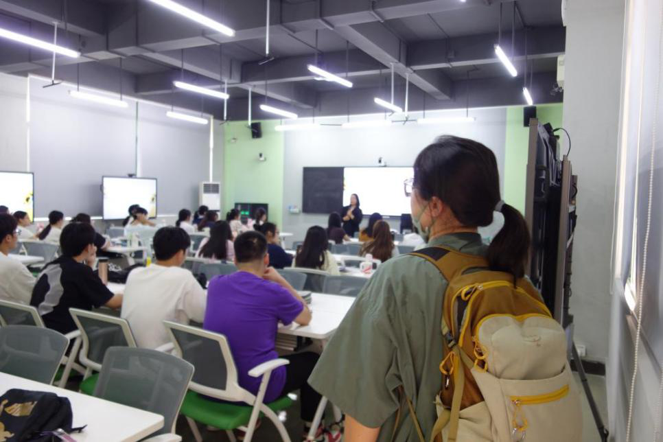 为确保2024-2025学年第一学期教学工作规范有序进行,加强教学管理和质量监控,建立稳定的教学秩序,全面了解和掌握学院教学开学准备及运行的整体情况。教师教育学院于2024年9月2日组织开展学院广州校区教学检查工作。在学院的组织安排下,陈上仁副院长、安洁副院长、院长助理郑皓元老师、教科办主任黄梓芬老师、学工办副主任江庆基老师、赵中宝老师、袁小婷老师、两校区辅导员和教秘老师深入课堂一线开展新学期教学检查工作。