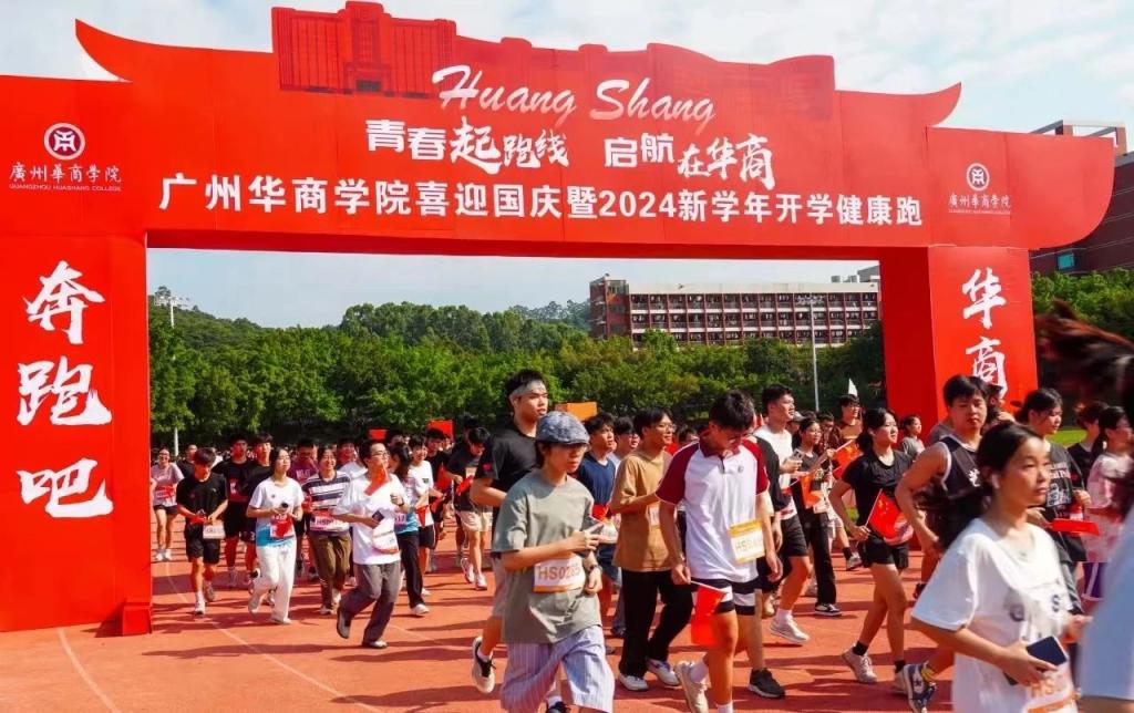 金秋送爽,丹桂飘香,9 月 28 日上午,广州华商学院开展以“青春起跑线 启航在华商”为主题的迎国庆暨 2024 新学年开学健康跑活动。此次活动旨在通过体育竞技的形式,激发师生爱国热情,增强体质,促进校园文化的建设与发展,同时庆祝中华人民共和国成立75周年的辉煌时刻。