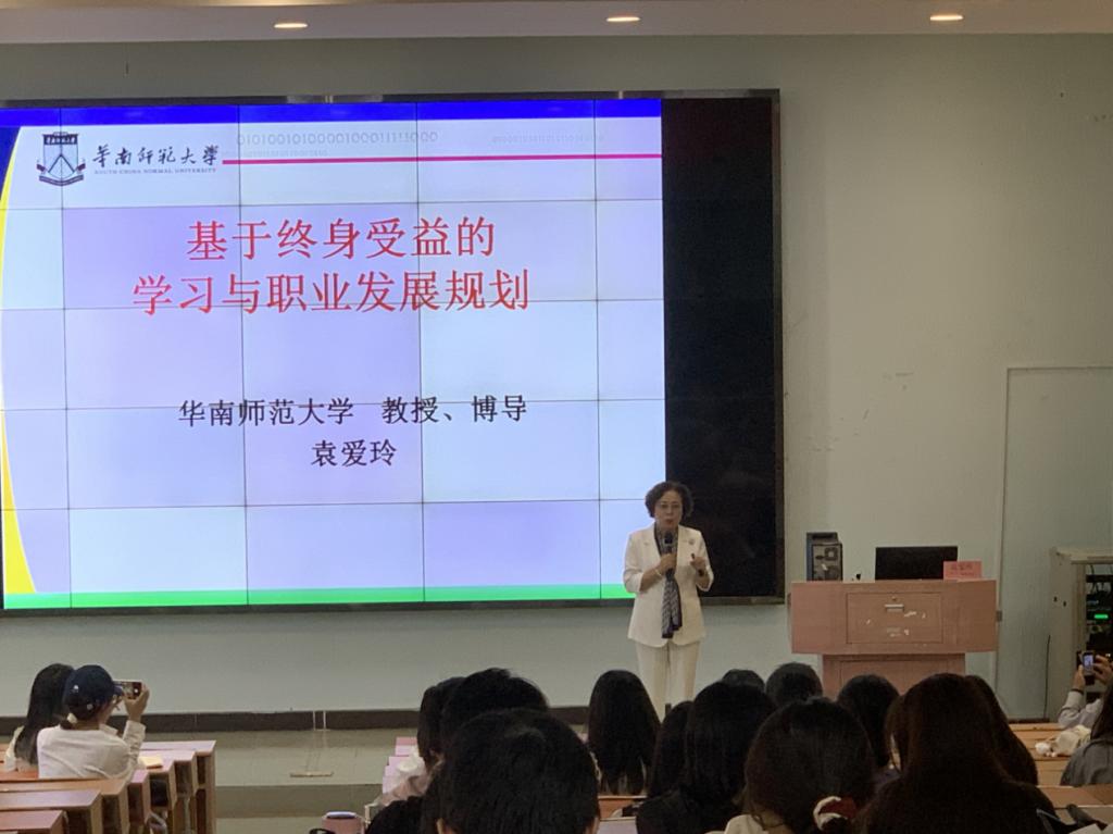 2024年11月7日,华南师范大学博士生导师袁爱玲教授在广州华商学院广州校区励志楼C408举办一场题为“终身受益的学习与职业发展规划”的讲座,共吸引了学校200多名师生参加。
