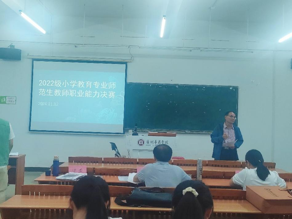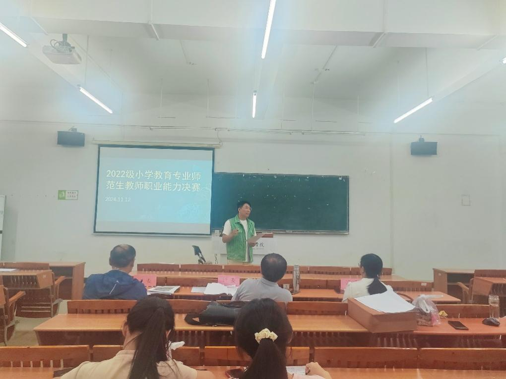 “展现教育风采,成就卓越梦想”,教师是塑造未来的艺术家,是点燃梦想的引路人,是教育事业的中坚力量,教师教育学院小学教育系教师技能大赛的举办,旨在为师范生们提供一个展示自我、交流学习的平台,激发学生们不断提升自身专业素养和教学能力的热情。教师教育学院小学教育系于11月12日14:00—18:00在励志楼三楼304课室举办了小学教育专业师范生职业能力大赛决赛。