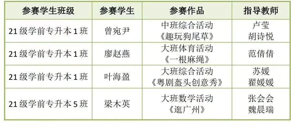 此次比赛,充分展现了广州华商学院学前教育专业学生的综合素质和专业能力,彰显了学前教育人才培养方面的成果。我们将继续深化教育教学改革,创新人才培养模式,为学前教育事业输送更多优秀人才。