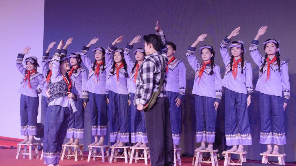 赛前,从舞蹈动作的编排到情景剧台词的打磨,从演员的表情神态到舞台的站位布局,师生们在排练室内不断练习,力求每个动作精准有力,每句台词情感充沛。