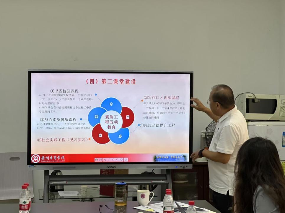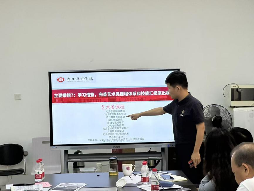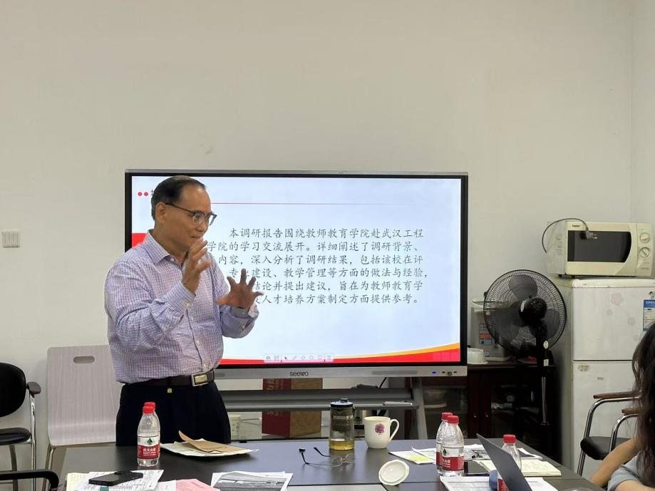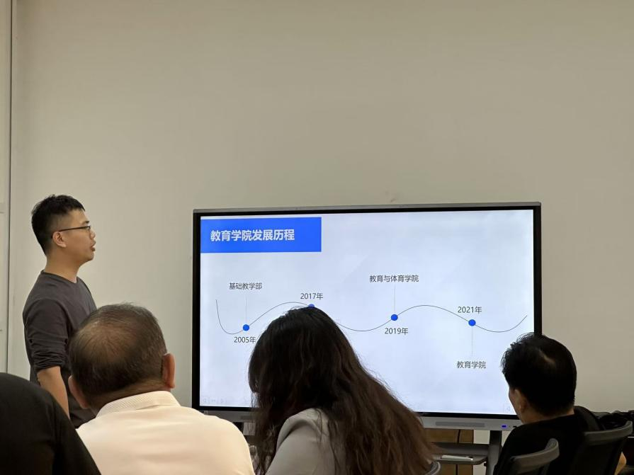 教师教育学院办公室李志森老师汇报了广东白云学院教育学院的调研情况,特别是专业设置、师资队伍及专业建设等方面的亮点,并对我院在文化墙建设和信息化管理方面提出了建设性改进建议。