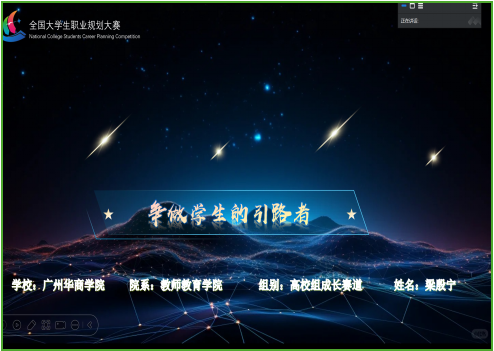 为扎实贯彻党中央、国务院针对高校毕业生就业工作所做出的决策部署,严格按照《教育部关于举办第二届全国大学生职业规划大赛的通知》(教学函〔2024〕3 号) 以及广州华商学院校赛通知的相关要求,教师教育学院于 2024 年 11 月 17 日在线上成功举办了第二届全国大学生职业规划大赛教师教育学院初赛。