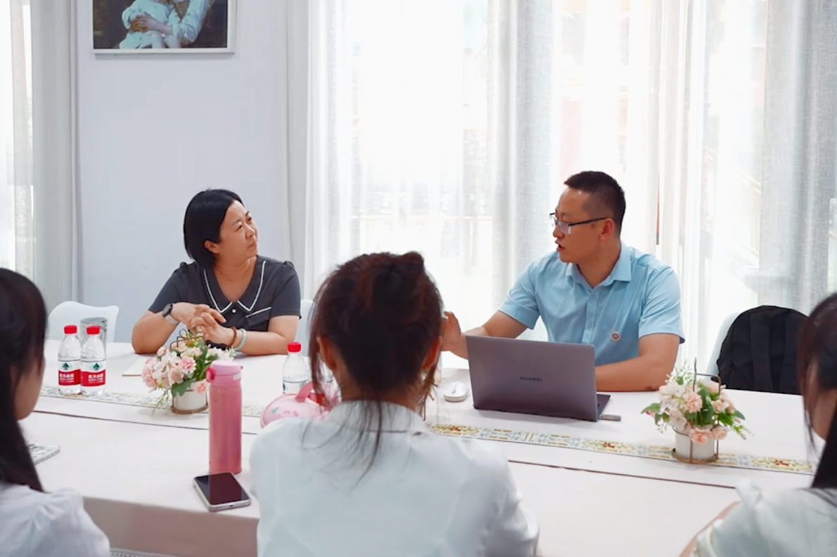 教学活动结束后,周剑铭老师及同学们与幼儿园沈小洁园长就幼儿园数字绘本的创编与教学展开了深入访谈。双方围绕如何结合幼儿认知特点进行数字绘本的创编、如何将数字绘本更好地融入幼儿园课程体系,实现课程资源的优化与建设升级等问题各抒己见。沈小洁园长结合幼儿园的实践教学经验,指出数字绘本应在内容上更贴近幼儿生活,形式上注重互动性和趣味性,以吸引幼儿主动参与学习。同时,双方还探讨了未来在数字绘本教学方面开展长期合作的可能。