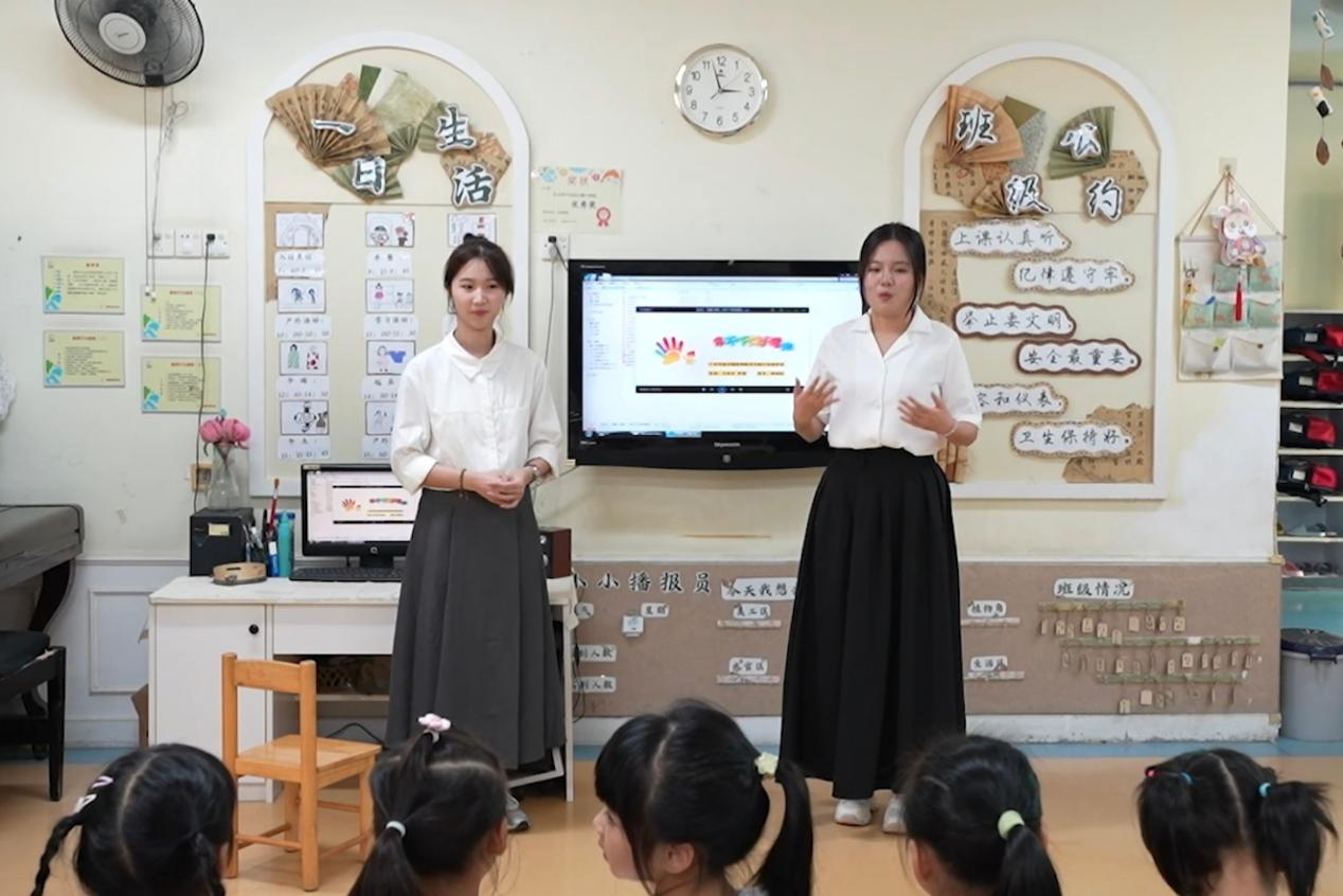 2025年5月27日下午,广州华商学院教师教育学院“数字绘本工作坊”的5位同学,在周剑铭老师的带领下,走进东莞市创思东骏幼儿园,开展了一场别开生面的数字绘本实践教学活动。