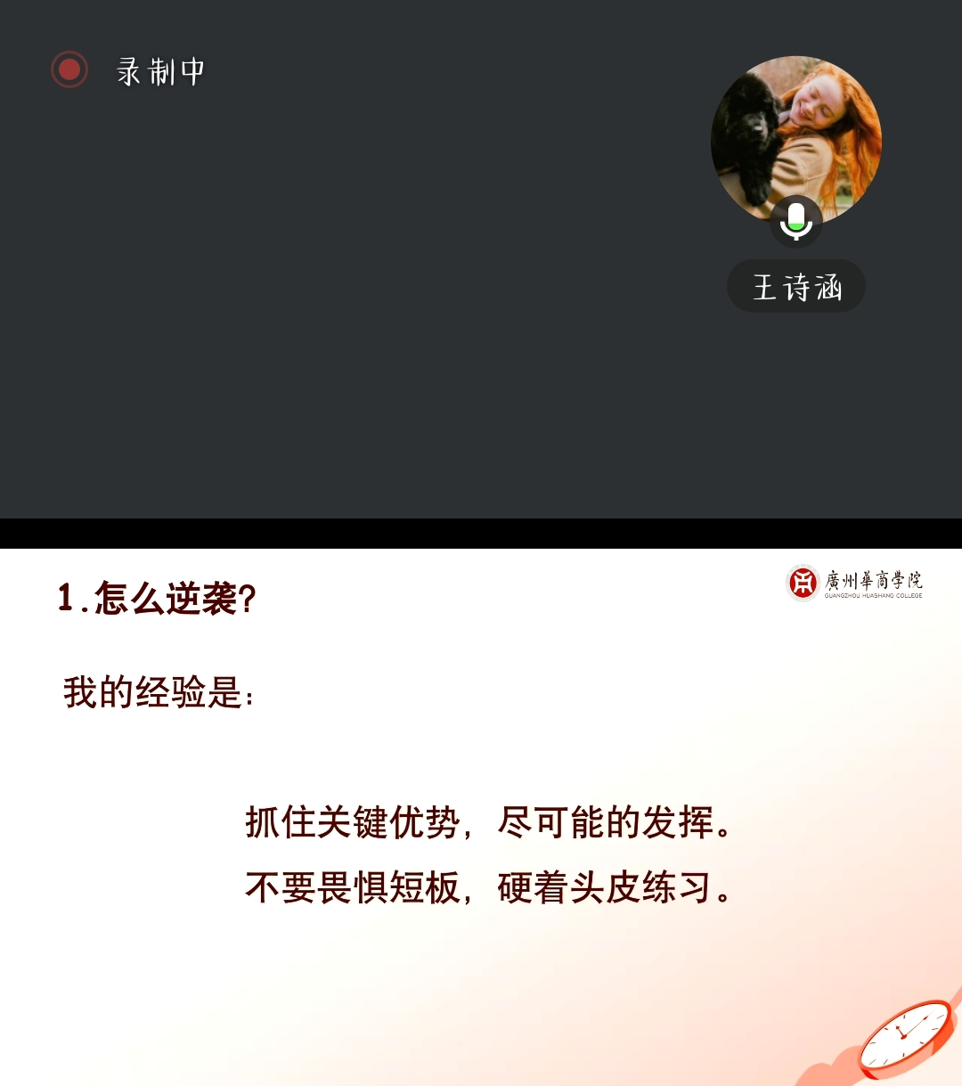 最后,洪紫静老师作总结发言,明确表示本次线上考研复试指导会虽临近尾声,但学院对同学们的复试帮扶与指导从未停止。学院将持续为通过初试的同学提供复试全流程精准指导,以高效务实的举措,为考研上线学子送去及时、有力的支持与助力。后续,学院将继续聚焦同学们的复试备考需求,通过精准学业指导、整合优质资源等方式,为同学们提供全方位、多层次的服务保障,全力护航每一位学子在复试中展现最佳状态、顺利圆梦研途。