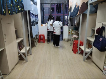 还有个别宿舍杂物堆积,物品摆放杂乱