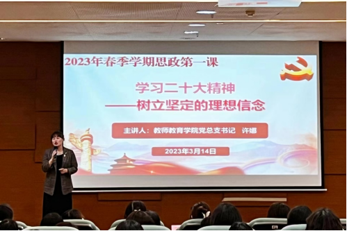 为全面贯彻党的教育方针,贯彻落实教育部十部门《全面推进“大思政课”建设的工作方案》精神,加强学院思政课建设,充分发挥思政课在立德树人中的关键作用。教师教育学院开展2023年春季学期“思政第一课”,旨在帮助学生进一步提高同学们的思想觉悟,贯彻落实党的二十大精神,增强同学们的爱国、爱党情怀。