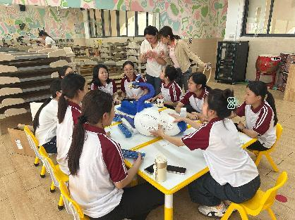 在入园后的见面会上,周园长向同学们八幼“尊重生命,以人为本”的办园理念,之后同学们迅速组队,投入了幼儿园环境创设的工作中。一班的学生制作扎染作品,他们开心地表示:“这样的实践课程非常有意义,既帮助自己深入了解幼儿园环创的过程与意义,又能够学到一项新的技能,丰富自己的生活”。二班则是用彩色纸板和扭扭棒装饰一只漂亮的立体“孔雀”。环创体验结束后,学生们手持《学前儿童科学教育》中的观察量表开始了课程观察,观摩真实的幼儿园科学活动的开展情况。