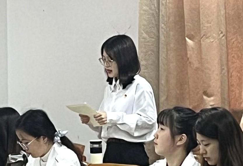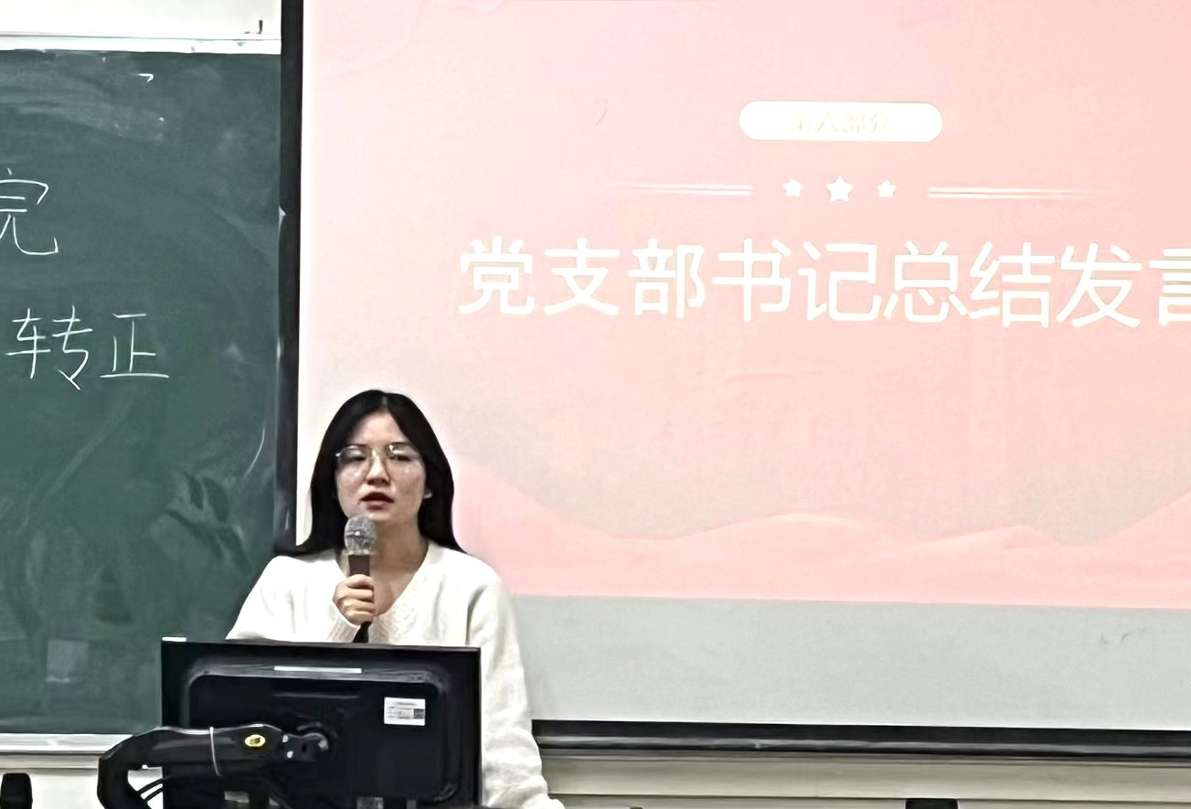 教师教育学院学生党支部预备党员分别上台进行自预备期以来的自我总结。各位同志分别从不同的角度阐述了自己预备期一年以来的进步和收获,能够做到以一名优秀党员的标准严格要求自己,继承和发扬理论联系实际、密切联系群众、批评与自我批评的优良作风,为群众办实事,树立良好的榜样,并正式向党组织提出转正申请。