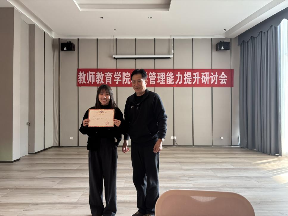 2024年12月7日,教师教育学院召开了教学管理团队能力提升研讨会。教师教育学院王金道院长、陈上仁副院长、张博副院长、谭建生名誉副院长以及行政办、教科办的教师参加会议。学院特别邀请了学院前行政办公室主任梁思婷老师参加会议,并做了相关经验的分享。本次会议由教学科研办公室主任黄梓芬老师主持,旨在进一步提升教学管理团队的专业能力和服务水平。