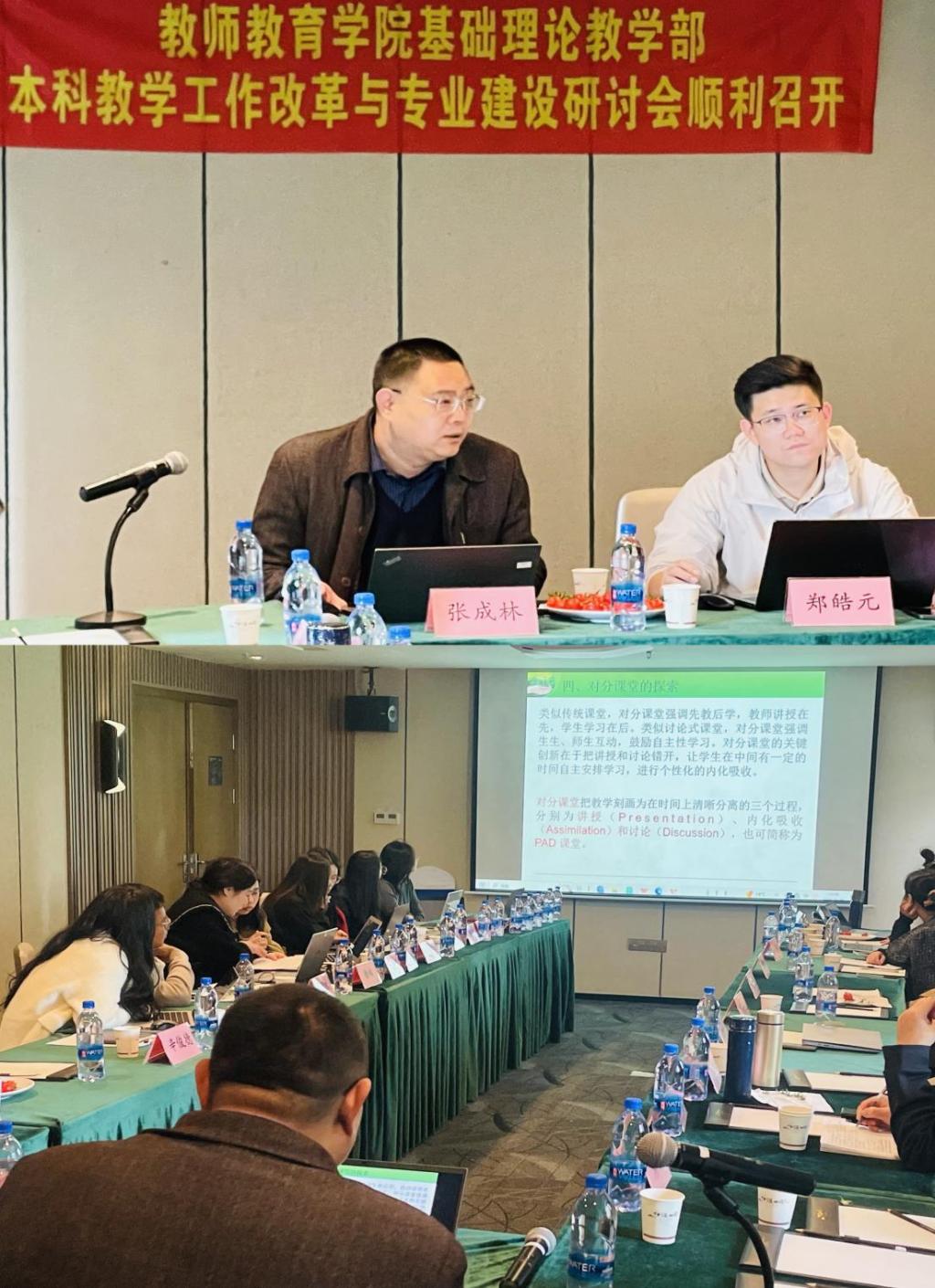 2025年1月4日至5日,教师教育学院基础理论教学部在惠州市南昆山竹溪山境酒店会议厅成功召开本科教学工作改革与专业建设研讨会,特别邀请了韶关学院教育科学研究院副院长张成林副教授参与此次会议,出席成员还包括校领导、学院领导班子、基础理论教学部全体老师等,会议由院长助理兼基础理论教学部主任郑皓元主持。