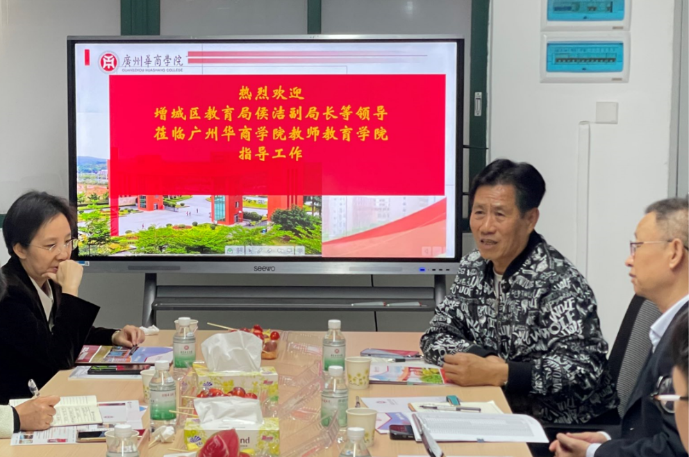 2025年3月5日,增城区教育局侯洁副局长等领导莅临广州华商学院教师教育学院开展指导工作。广州华商学院校长胡军教授、党委书记陈玉欢教授代表学校,以诚挚热忱之态迎接来访领导,展现出对此次交流活动的高度重视。