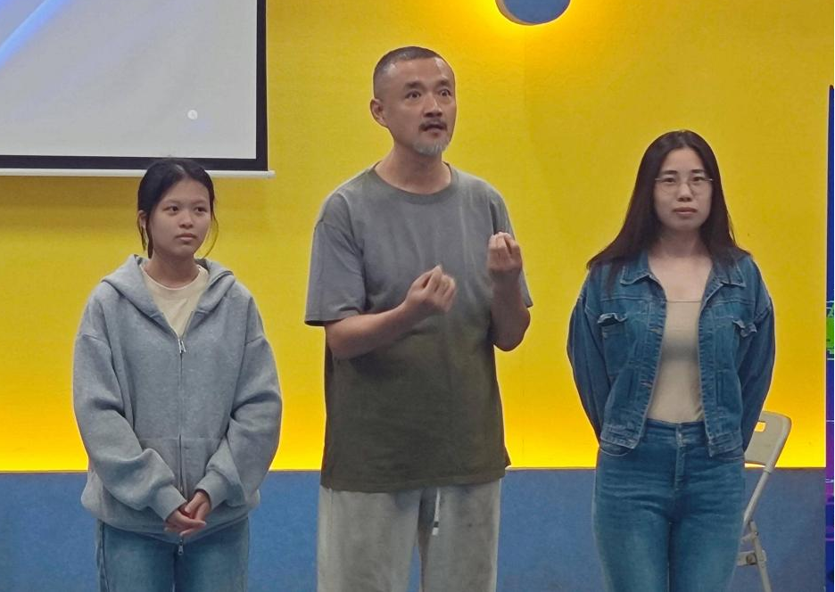 紧接着,刘晓璐老师围绕“戏剧理论及导表演”展开了深入浅出的教学。他从教育戏剧的本质出发,详细解析了“声台形表”的实践要点,并结合“以戏育人”的教育理念,深入剖析了素质教育的丰富内涵。此外,洪紫静老师还倾情分享了教师肢体言语的宝贵经验,从站姿、手势到面部表情,为学员们提供了实用的教学技巧和灵感。课程尾声,刘老师布置了一项创意任务:运用“钱呢 货呢 老规矩 随你”四句话设计并演绎一段戏剧片段,鼓励学员将所学理论转化为生动的戏剧表达。