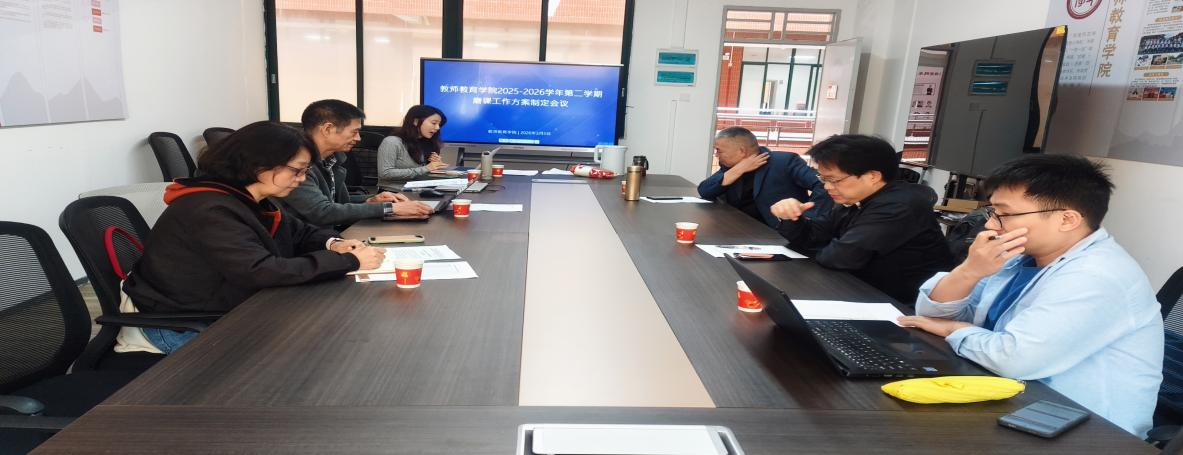 2026年3月5日,教师教育学院在创新楼206会议室召开2025-2026学年第二学期磨课工作方案制定会议。学院督导组组长张博院长、院级督导组成员王先岳教授、刘宗南教授、刘东伟副教授,学校责任督导员金慧教授,教科办副主任林晞老师参加会议。会议由院级督导组秘书邢桂璇老师主持。