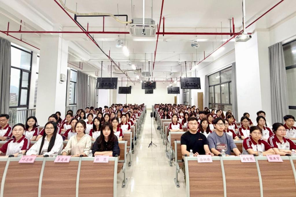 学生代表24本小学教育6班沙淑怡发言,倡议全体同学以实际行动践行文明安全纪律要求:一是自觉守纪律,主动学习《学生手册》,杜绝考试作弊、违规用电等违纪行为,将守纪律内化为习惯;二是严格管自己,规范课堂与宿舍行为,做到着装得体、不迟到早退、遵守宿舍管理规定,筑牢安全意识;三是携手共建优良校园环境,彼此提醒规范行为,主动制止不文明现象,以责任与担当为打造和谐文明校园贡献力量。