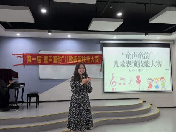 为夯实学前教育专业学生的幼儿艺术教育基本功,提升儿歌演绎与舞台表达能力,推动专业技能与课程教学深度融合,2026 年 3 月 31日下午,广州华商学院教师教育学院学前教育专业第一届 “童声童韵” 儿歌表演技能大赛在肇庆校区顺利举行。本次大赛以赛促学、以赛促练、以赛促能,为学前教育学子搭建了展示专业素养与艺术风采的实践平台,赛场之上童声悠扬、活力满满,尽显学子们的专业风采与童趣创意。