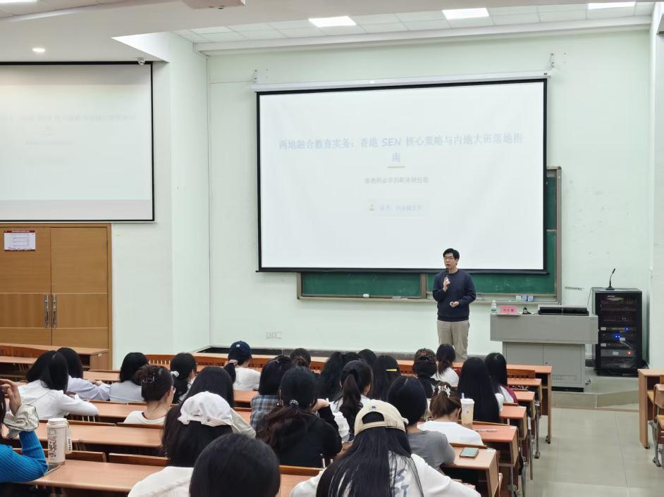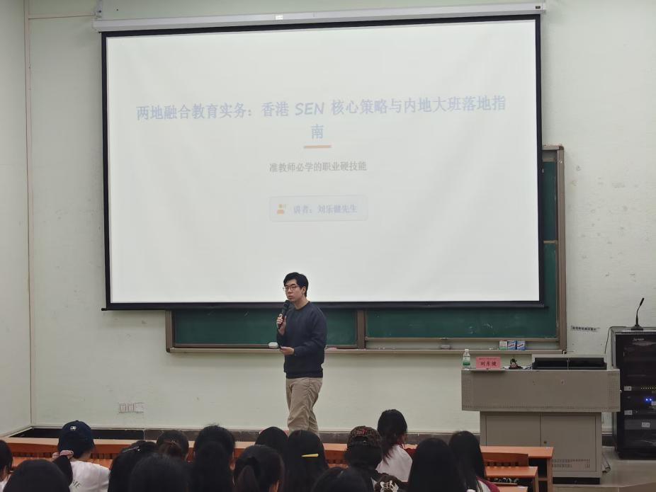 3月31日下午,以《特殊教育两地互补·香港SEN策略实践分享》为主题的专题讲座顺利开展。本次讲座特邀香港资深特殊教育专家刘乐健先生主讲,教师教育学院师生参与了活动。
