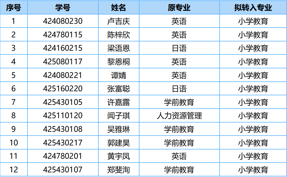 根据《广州华商学院学生转专业管理办法》(华商院〔2025〕206号)、《教师教育学院转专业实施细则(2025版)》,经学生自愿申请、材料审核、专业面试(含小学教育专业专项考核)等环节,现将拟转入我院的学生名单公示如下: