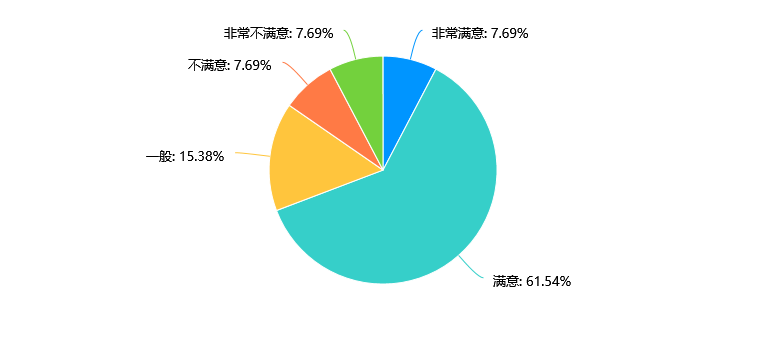 数据显示,在校生对学校提供的第二课堂、教学实践的满意度分布较为分散。满意和一般的比例相近,分别为38.46%;不满意和非常不满意的比例合计为23.07%,相对较低。需要在提供第二课堂和教学实践方面进一步改进,以提升满意度,比如通过增加课程多样性、提高教学质量、加强师资培训等方式来改善。