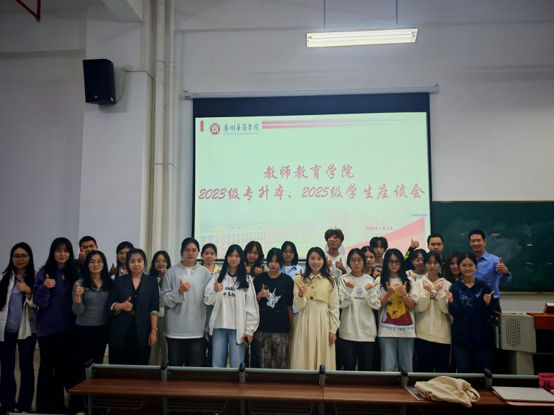 为深化师生交流、凝聚育人共识,切实提升教育教学质量,2025年11月11日、13日,教师教育学院先后在肇庆校区、广州校区召开了2025-2026学年第一学期小学教育、学前教育专业学生座谈会。学院副院长张博教授、各系部教师代表及2023-2025级各班学习委员代表出席座谈,会议由教学科研办公室林晞老师主持。(2023级专升本与2025级学生座谈会合照) 座谈会上,学生代表结合专业学习实际,围绕课堂教学、课程安排、实践教学、...