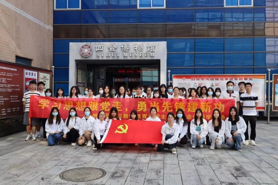 为深入学习贯彻习近平新时代中国特色社会主义思想,进一步激励和引领同学们坚定不移听党话、感党恩、跟党走,教师教育学院党总支开展学习贯彻习近平新时代中国特色社会主义思想主题教育。于2023年5月28日,教师教育学院学院党总支副书记许娜老师带领师生党员和学生骨干在四会市博物馆开展“学习思想跟党走,勇当先锋建新功”主题教育红色基地调研活动。在志愿者的带领下,教师党员带领学生骨干参观了党史基地彭泽民纪念馆、四会...