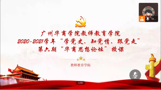 为带动全校师生深入学习习近平总书记在党史学习教育动员大会上的讲话精神,认真落实中共党史学习教育,教师教育学院于2021年6月9日18:00在腾讯会议开展关于“学党史、知党情、跟党走”的“华商思想论坛”线上讲座。本次讲座我们有幸邀请到马克思主义学院邹宁军讲师为我们讲授,教师教育学院师生260余人参加。一、开场介绍主持人首先向我们介绍了本次主讲嘉宾——马克思主义学院邹宁军讲师,并对邹讲...