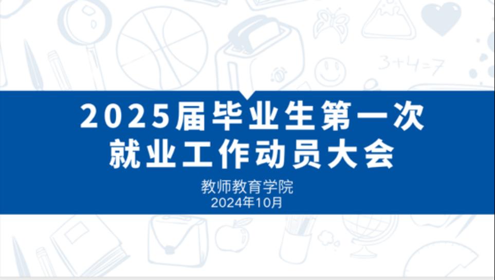 为全面推进2025届毕业生的就业工作,培养毕业生正确的就业观,充分调动毕业生就业的积极性和主动性。教师教育学院于2024年10月16号下午18时举行了2025届毕业生就业动员大会。教师教育学院学生工作办公室副主任江庆基老师,2025届毕业班辅导员朱娜、邓奎、任丽老师出席本次动员会,学院2025届全体毕业生参会。 会议伊始,江庆基副主任作动员讲话。他强调,学院领导高度重视就业工作,多次开会研究指导就业工作,目前就业仍面临...