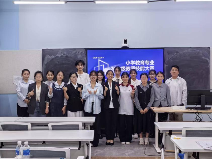 三尺讲台初展艺,满腔热忱绘初心。10月28日,广州华商学院教师教育学院2023级小学教育专业师范生技能大赛在励志楼D203圆满收官。本次大赛以“锤炼教学技能,培育未来良师”为核心,为2023级师范生搭建了实践展示、交流提升的平台,16位获奖选手凭借扎实的专业素养与灵动的教学设计,交出了一份亮眼的“教学答卷”。 当日14:00前,参赛选手陆续抵达励志楼D205候考室签到,或低头梳理教学思路,或轻声演练教学片段,候考室内...